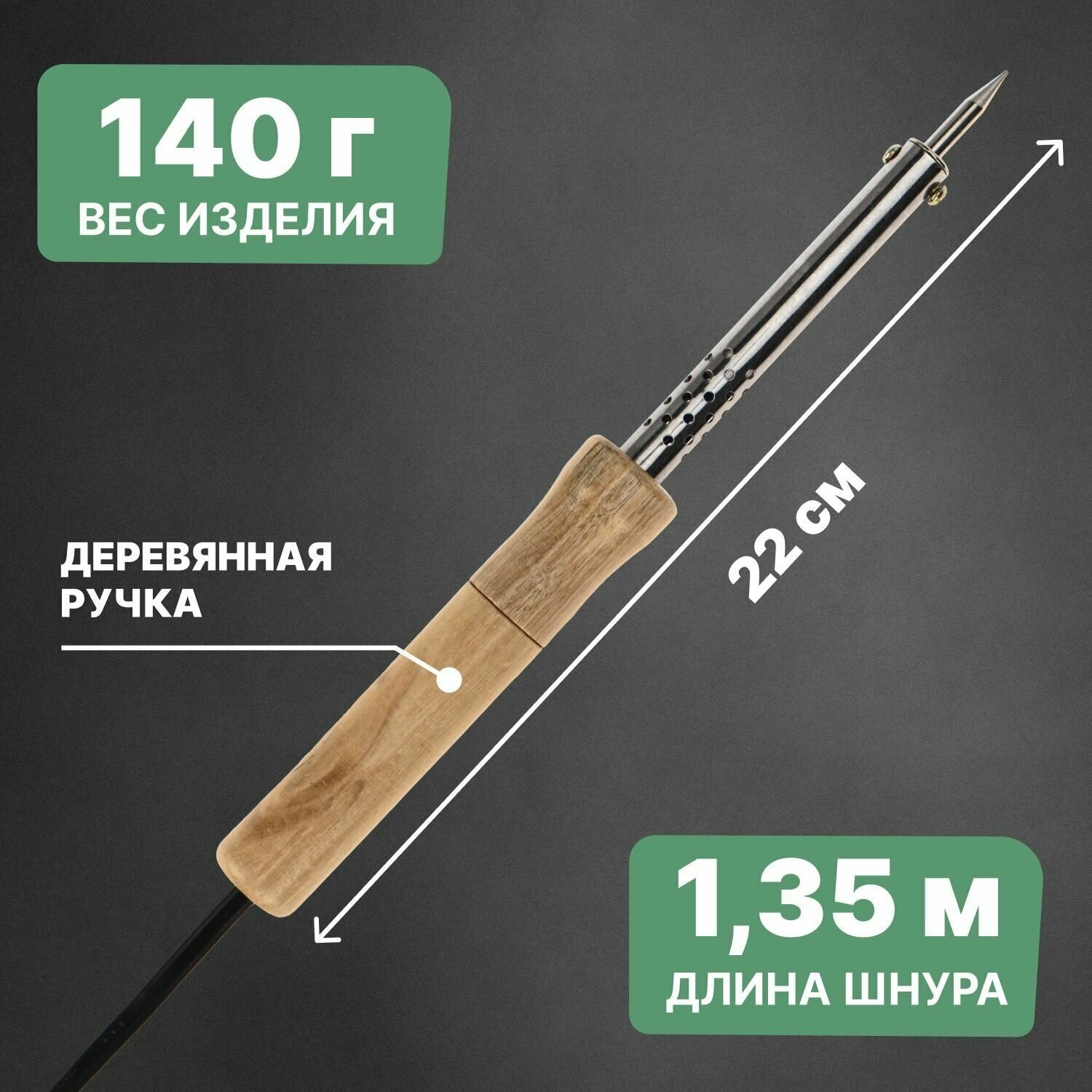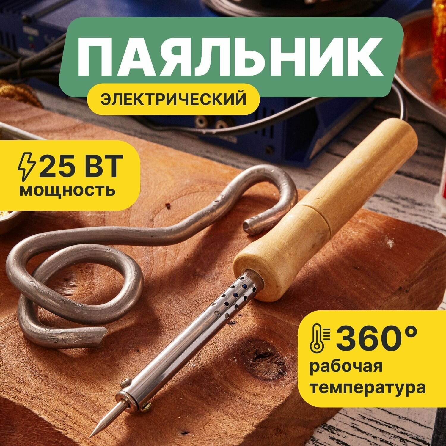 Электрический паяльник с деревянной ручкой и конусообразным жалом непрерывного нагрева (25 Вт)