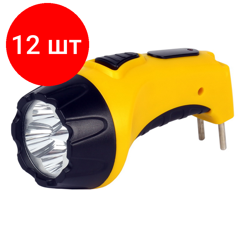 Фонарик Комплект 12 шт, Фонарь Smartbuy SBF-84-Y, аккумуляторный, светодиодный, 4 LED, прямая зарядка от сети, желтый