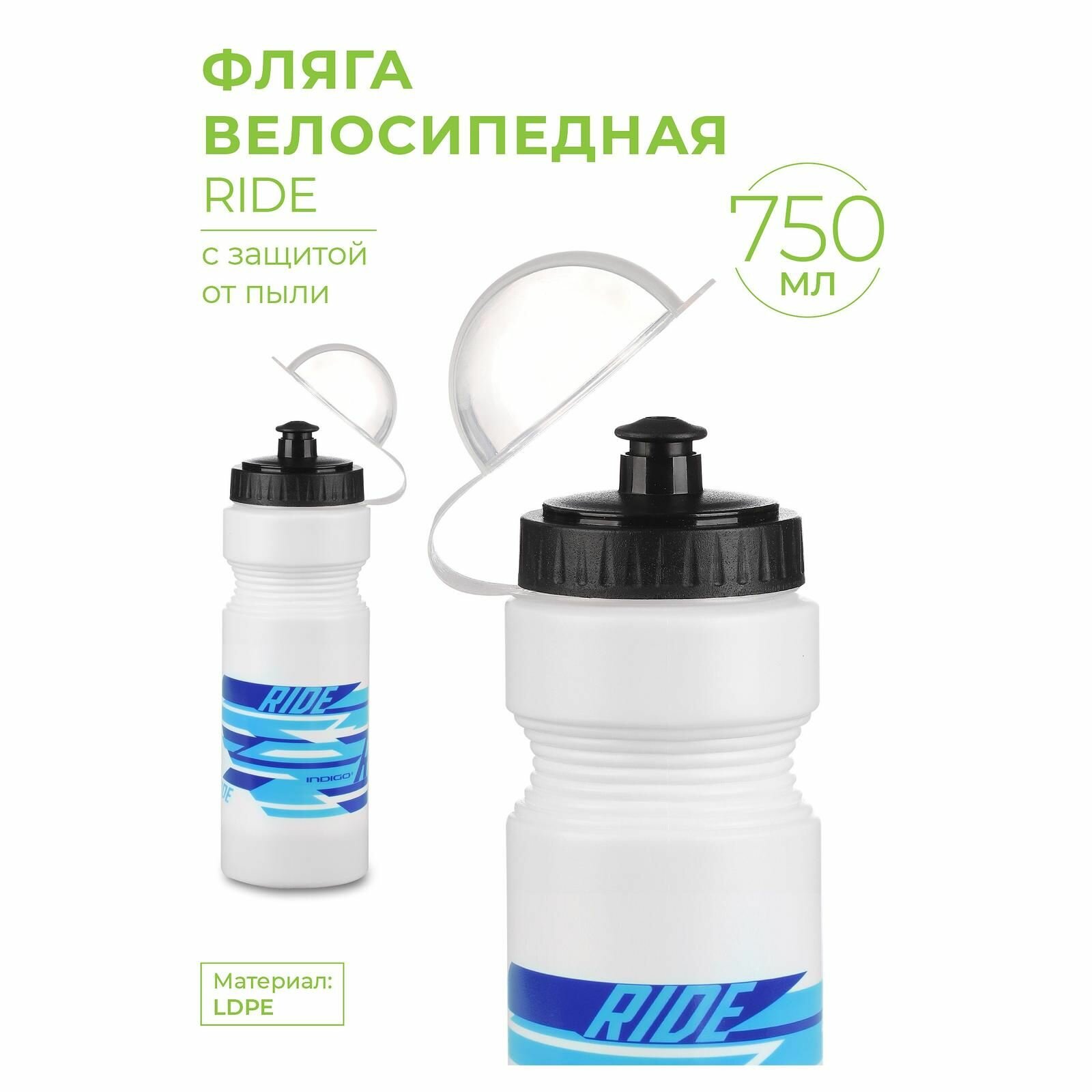 Фляги и бутылки Фляга велосипедная, Бутылка для воды велосипедная INDIGO RIDE с защитой от пыли 750 мл