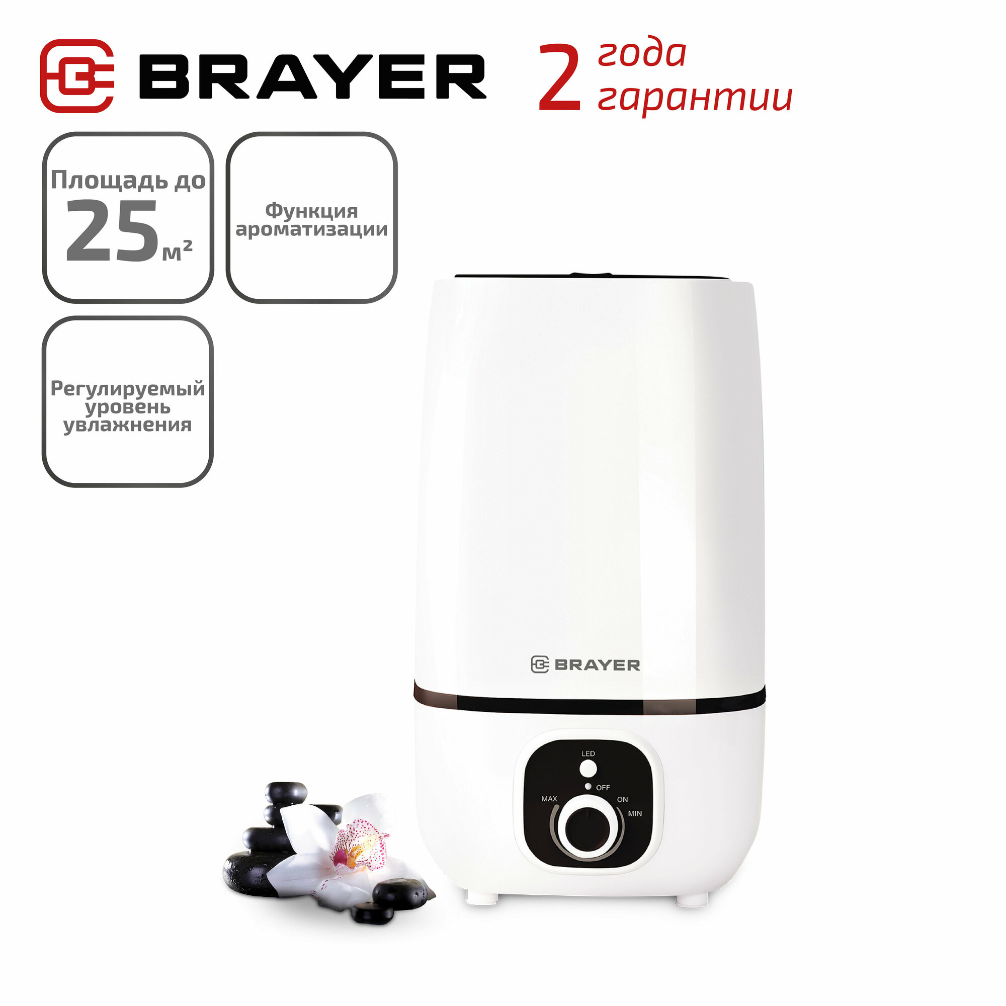 Увлажнитель воздуха BRAYER BR4700WH, объем бака 4 л, 25 Вт, арома-контейнер, белый