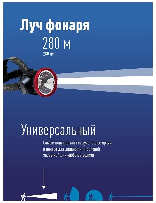 Налобный фонарь космос Premium, 220lm, 5Вт [kocaccuh5wled] 510 ₽ Подробнее