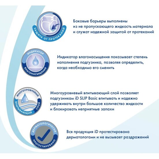 Подгузники для взрослых iD Slip Basic, XL, 7 капель, 120-170 см, 1 уп. по 30 шт. 2 125 ₽ Подробнее
