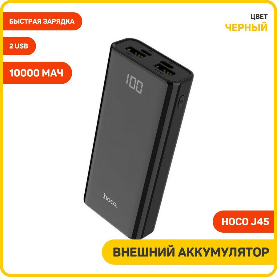 Портативный аккумулятор Hoco J45 Elegant shell 10000mAh, черный, упаковка: коробка