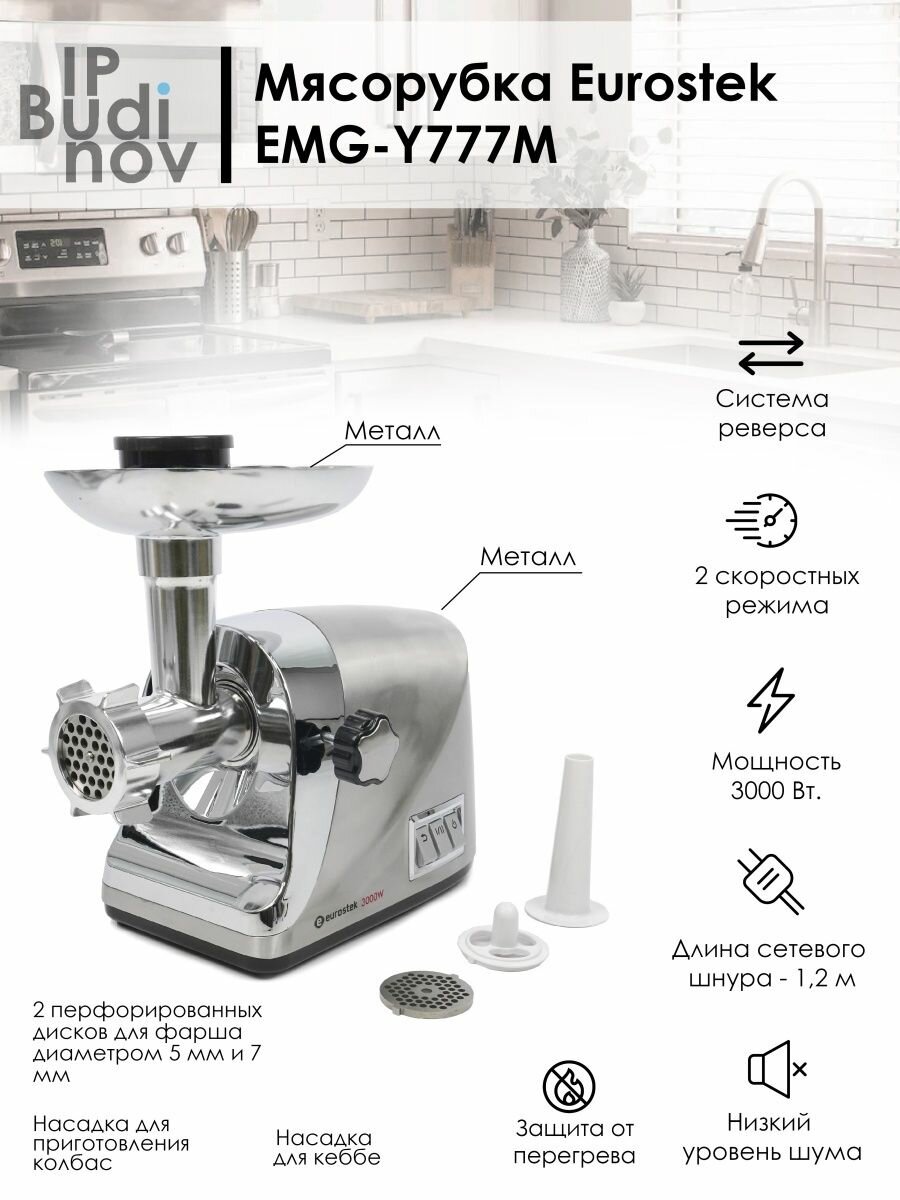 Мясорубка Eurostek EMG-Y777M (3000Вт, серебристый)