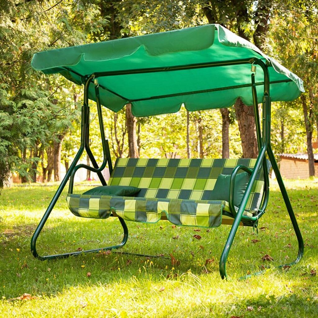 Качели садовые 3-х местные Ольса Фьюджи каркас зеленый, ткань зеленая клетка
