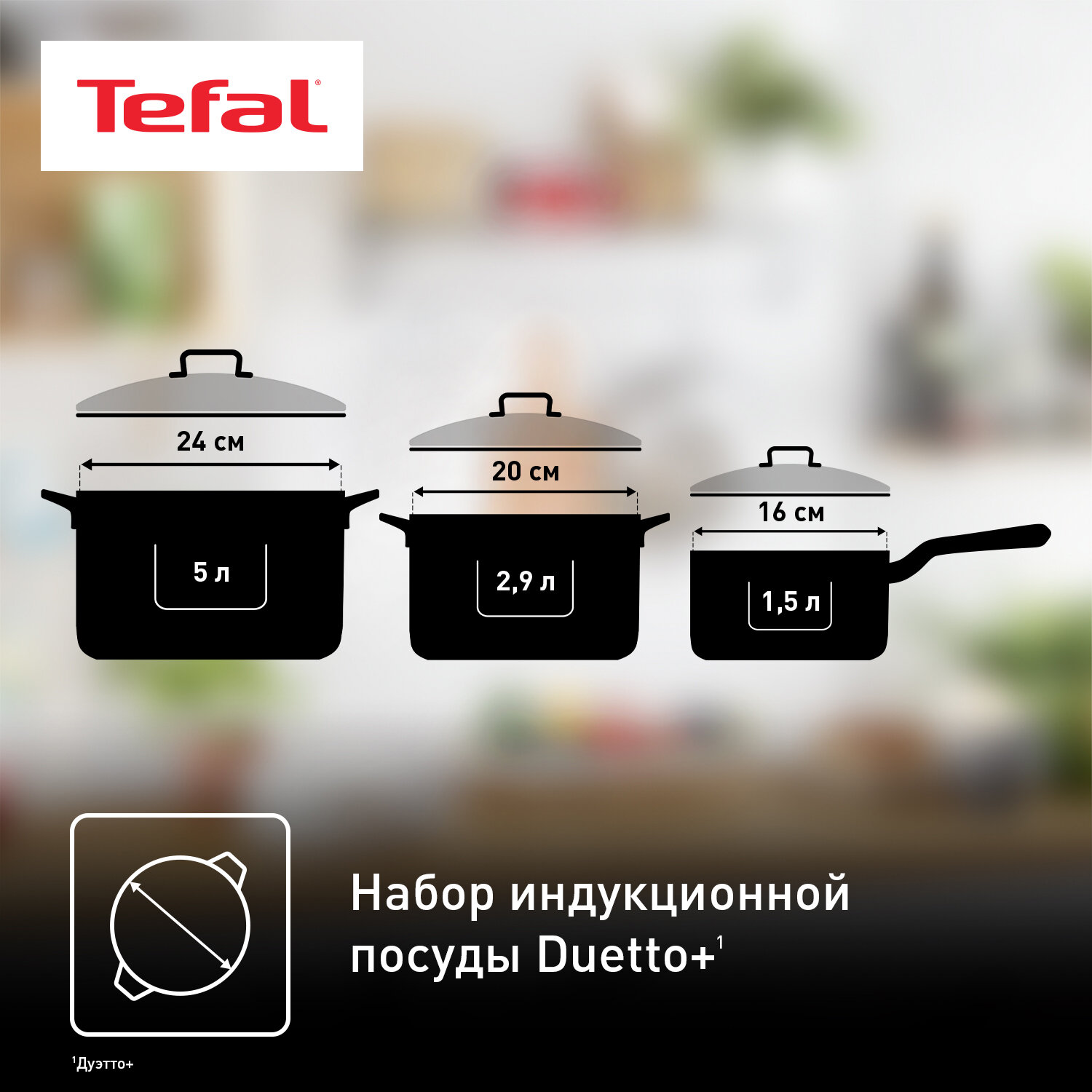 Набор посуды из нержавеющей стали Tefal Duetto+ G719S674, 6 предметов, кастрюли и ковш с толстым дном, для газовых, электрических и индукционных плит 9 899 ₽ Подробнее