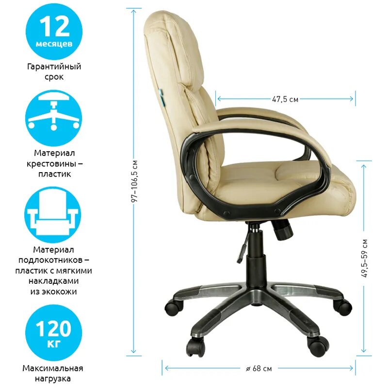 Кресло руководителя Helmi HL-E08 «Receipt», экокожа бежевая 14 680 ₽ Подробнее