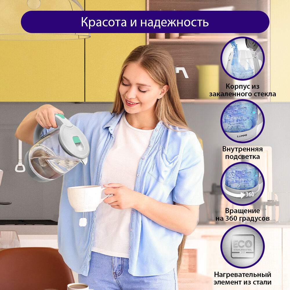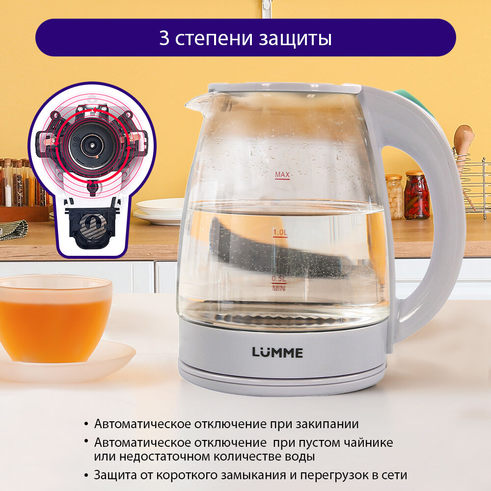 Электрочайники LUMME LU-160 {Longyi} белый жемчуг чайник стеклянный