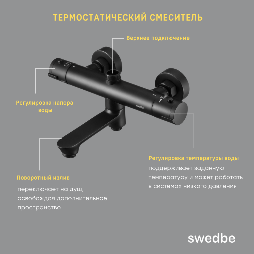Термостат настенный для ванны и душа Swedbe Hermes с поворотным изливом 9042