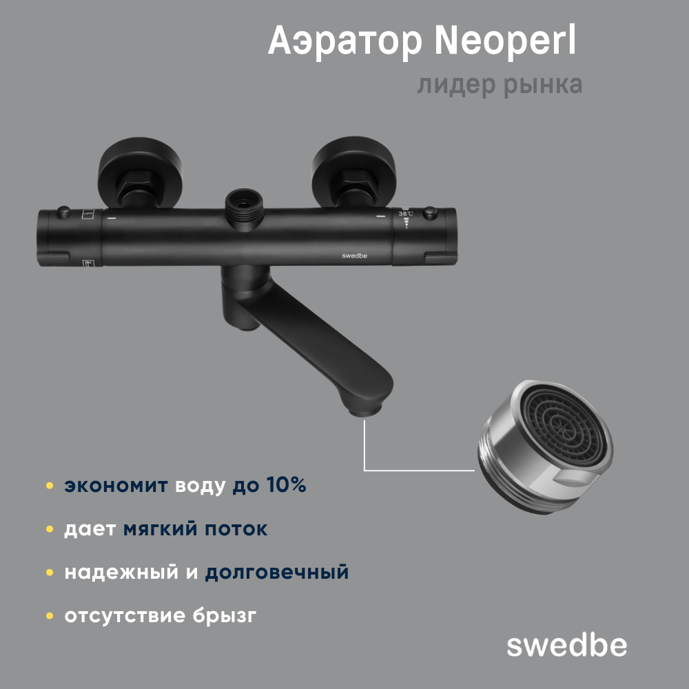 Смеситель термостатический для ванны с поворотным изливом Swedbe Hermes 9042B 23 948 ₽ Подробнее