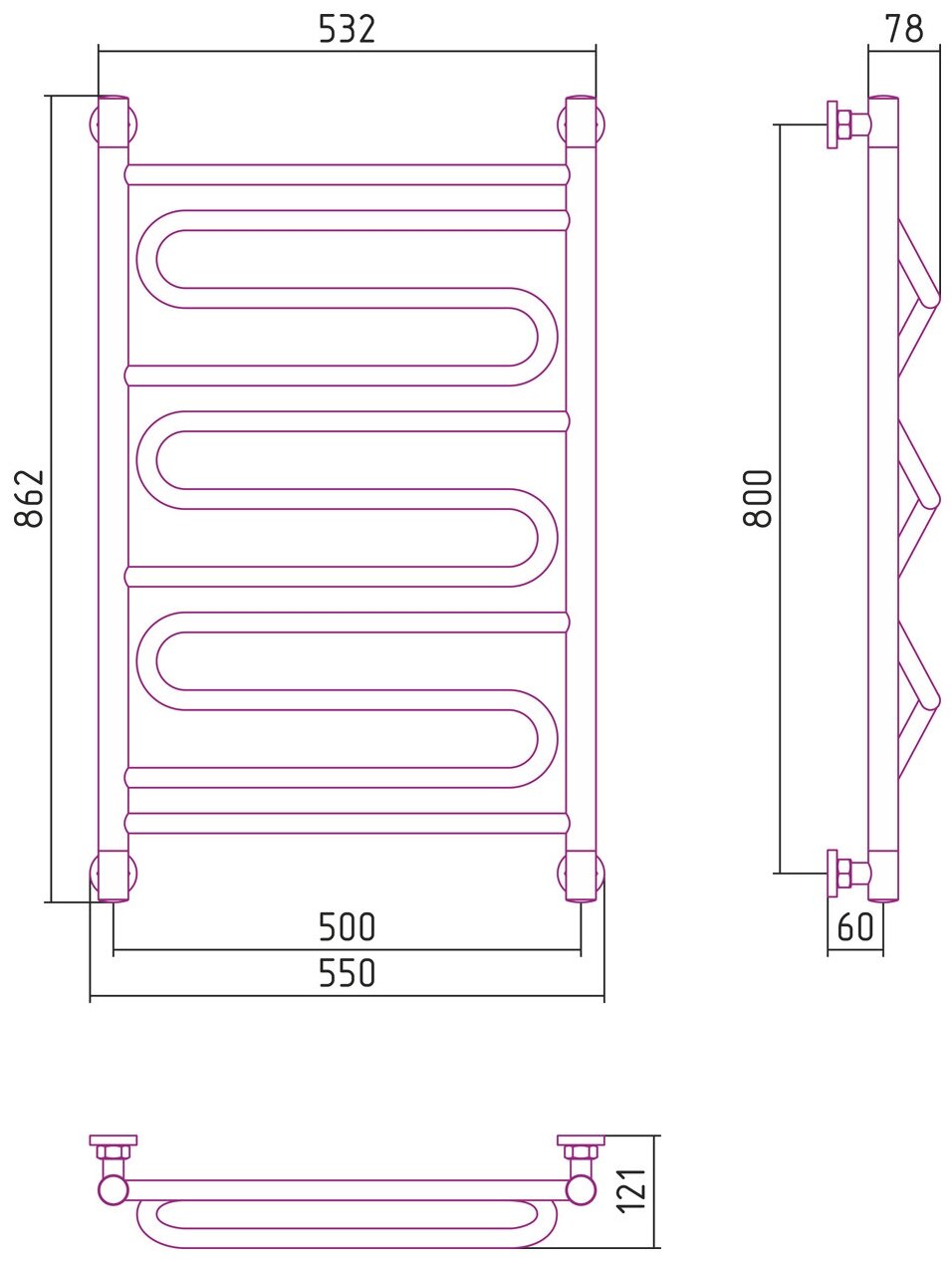 Полотенцесушитель водяной ЭЛЕГИЯ+ 800х500