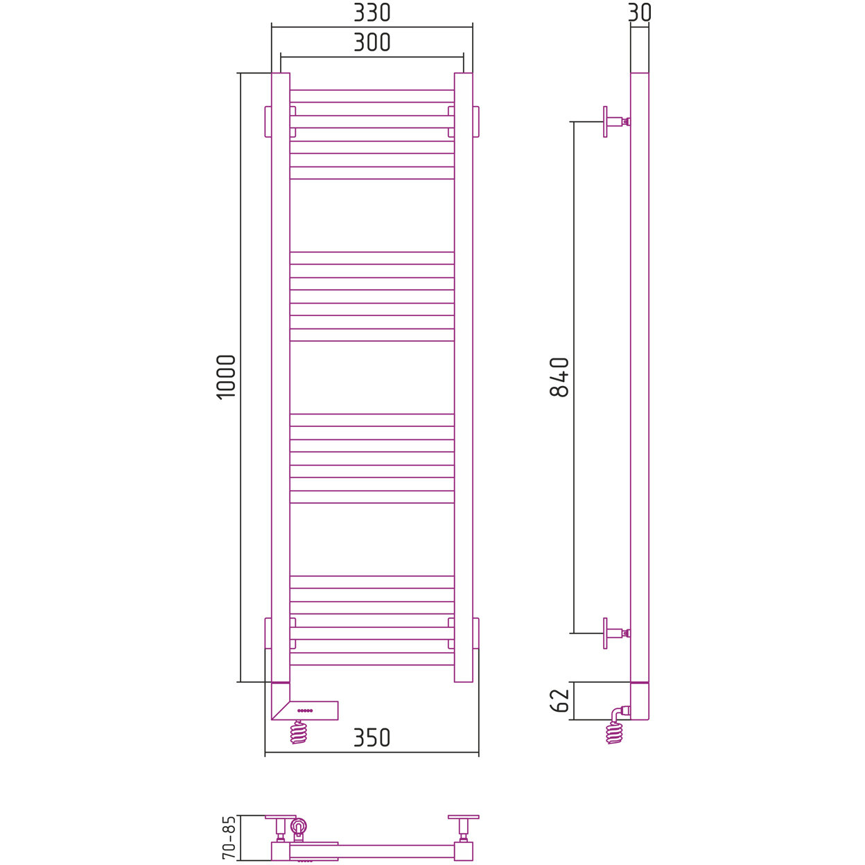 Полотенцесушитель электрический Сунержа 00-5600-1030 Модус 2.0 Полотенцесушитель электрический РЭБ, 1000х300 мм/ МЭМ левый, без покрытия