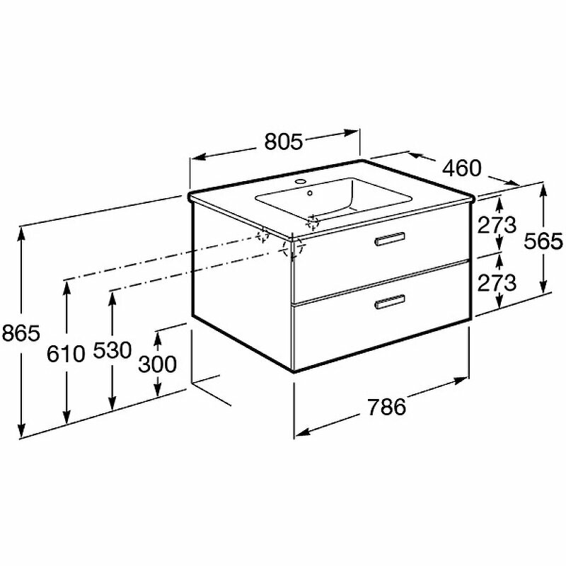 Лучшие цены. Roca Victoria Nord 80 ZRU9000032 - подвесная тумба под раковину с двумя выдвижными ящиками. Представляет собой функциональное, надежное и практичное решение, которое одинаково хорошо совместимо с классическими и современными интерьерами. Конструкция тумбы удобно разделена на два отделения с ящиками. Ящики открываются посредством удобных хромированных ручек. Внешне фасад покрыт прочным покрытием, которое прекрасно предотвращает вздутие основного материала от повышенной влажности. Цвет: Белый. Магазины в вашем городе.