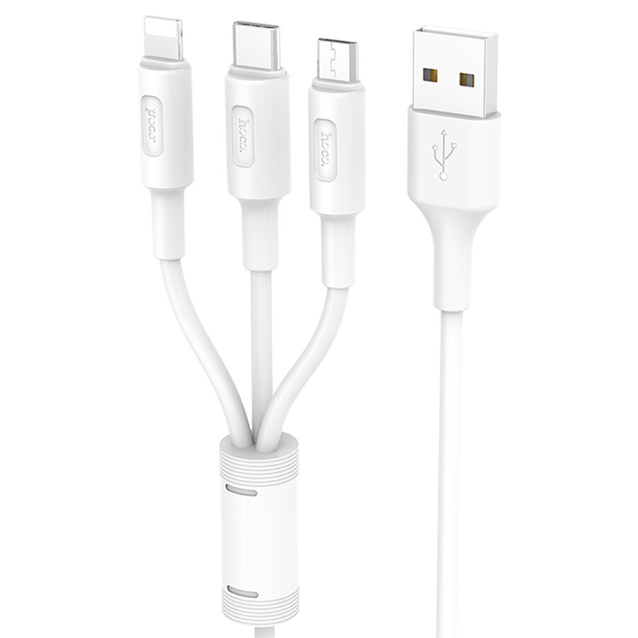 Зарядки для гаджетов Кабель USB HOCO X25 Soarer 3 в 1 USB - Type-C + Lightning + MicroUSB, 2А, 1 м, белый