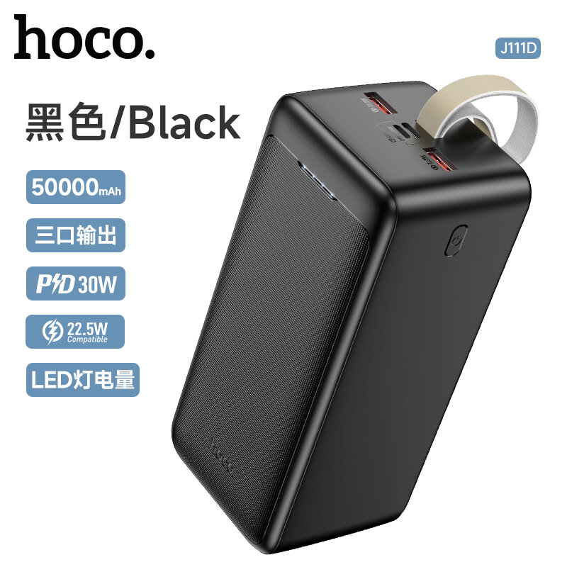Powerbank Универсальный Доп. Аккумулятор 50000mAh, J111D, HOCO, выход: 2 USB (22.5W)+1 PD (30W), черный