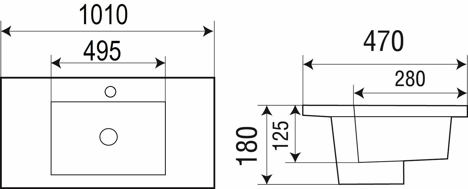 Раковина подвесная WeltWasser 101х47х18 WW SK DEILBACH 7506-100 10000003904