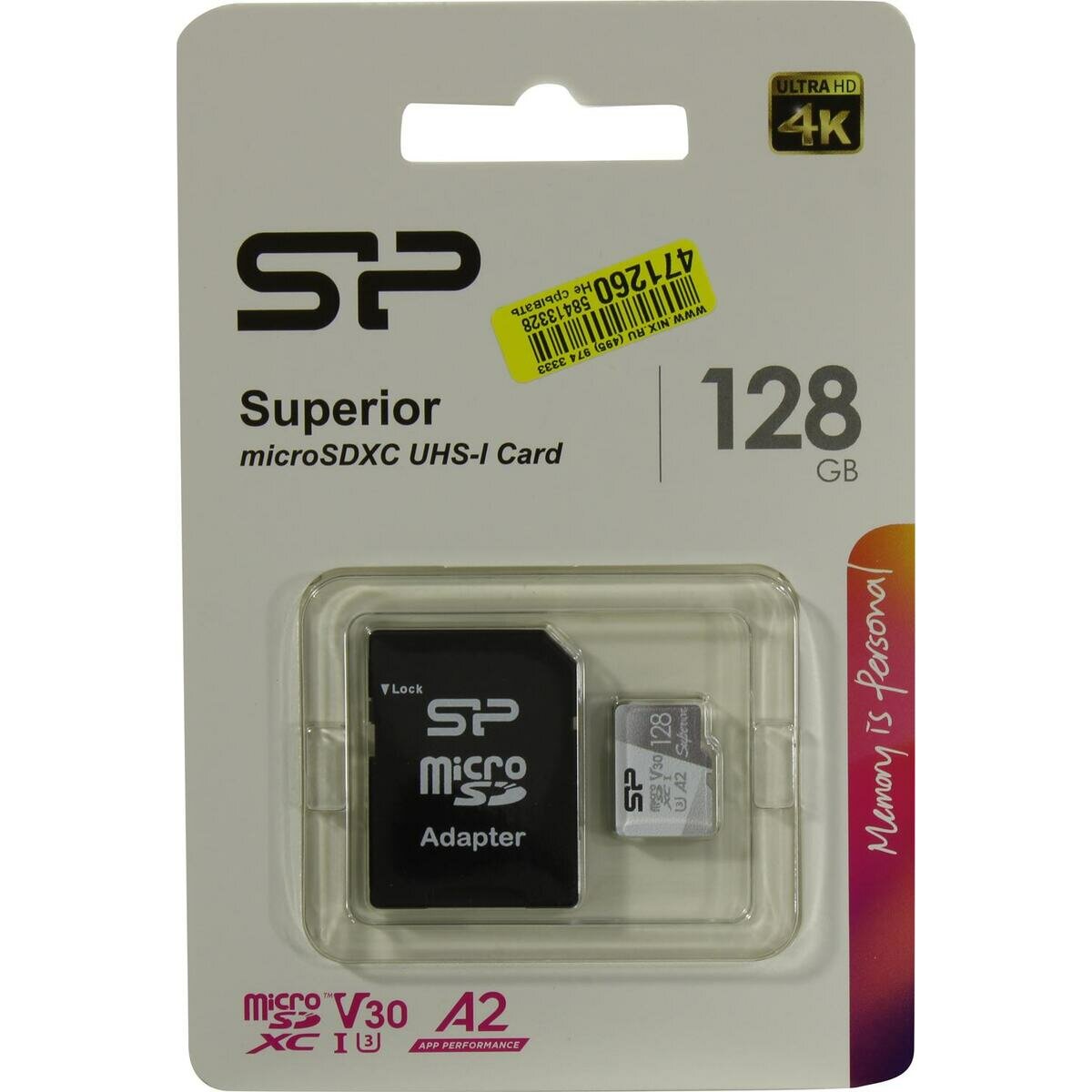 Карта памяти Silicon Power micro SDXC 128Gb Superior UHS-I U3 V30 A2 + ADP (100/80 Mb/s)