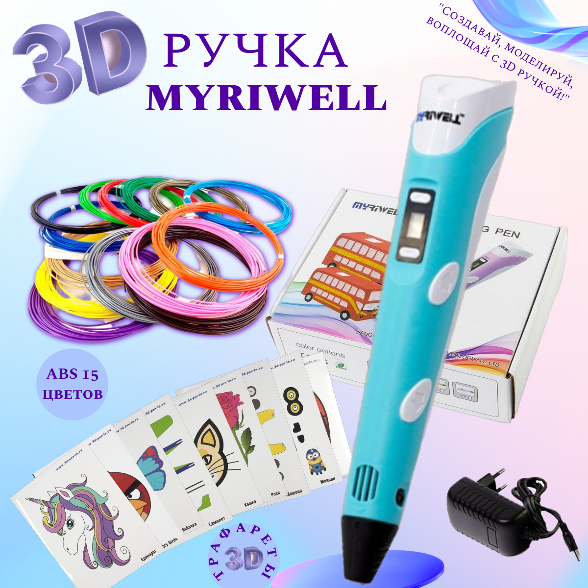 3D ручка Myriwell_RP100B (150м ABS пластика + трафареты 3d-pen-in) голубой