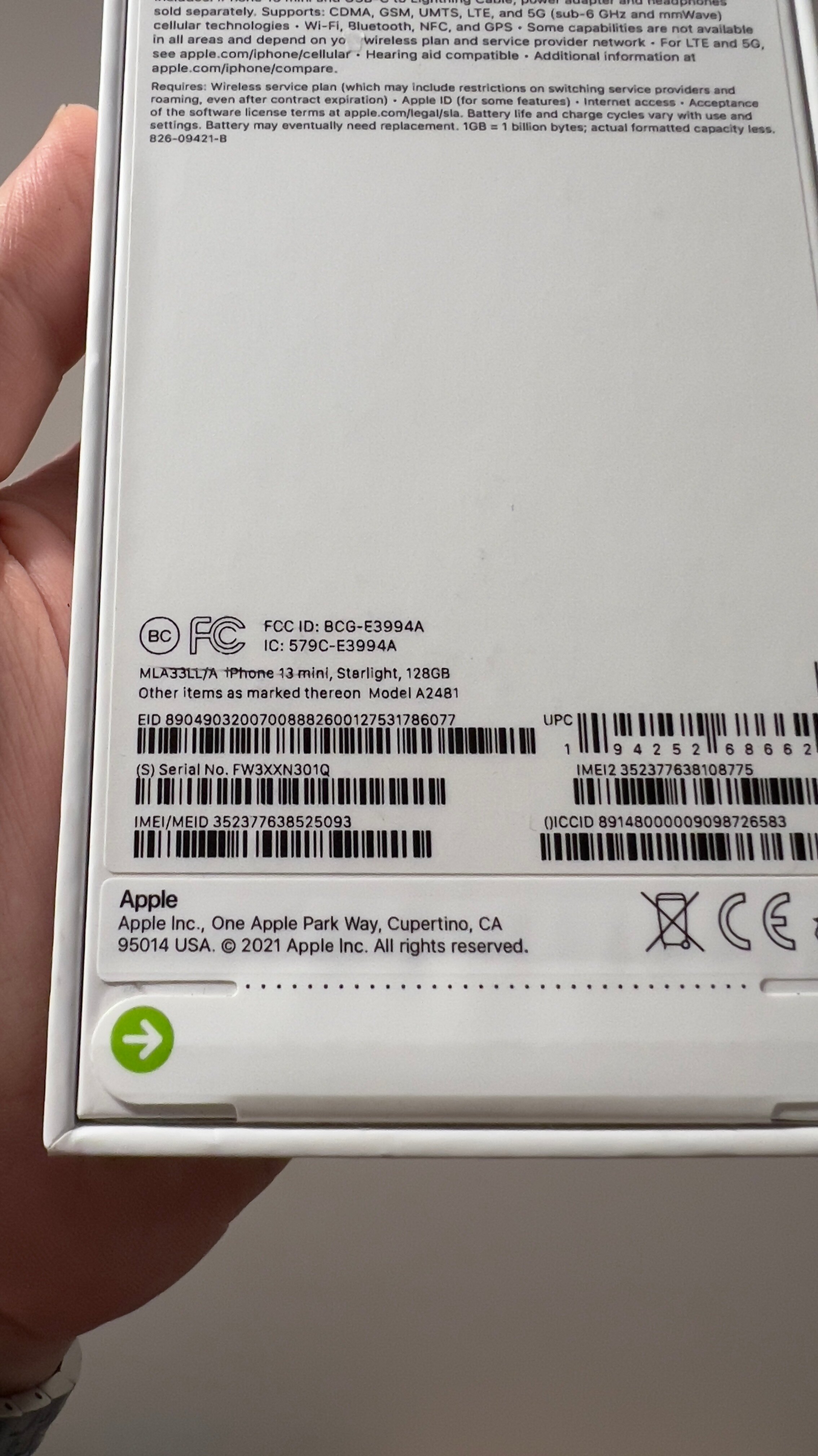 Смартфон Apple iPhone 13 mini 128Gb nano SIM+eSIM Green (Global)