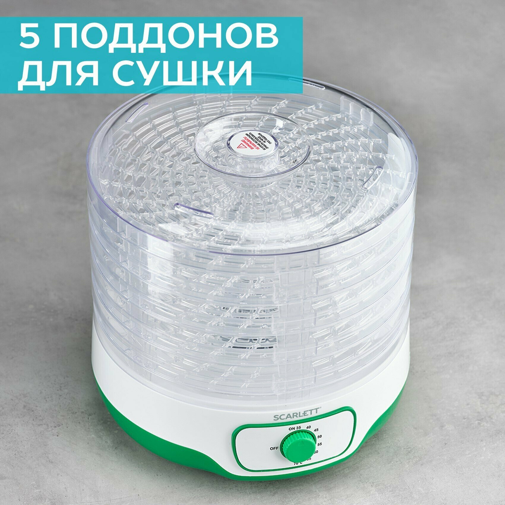 Сушилка для овощей и фруктов Scarlett SC-FD421015, конвективная, поддоны прозрачный пластик, 5 шт, 250 Вт, регулировка температуры, защита от перегрева 3 640 ₽ Подробнее