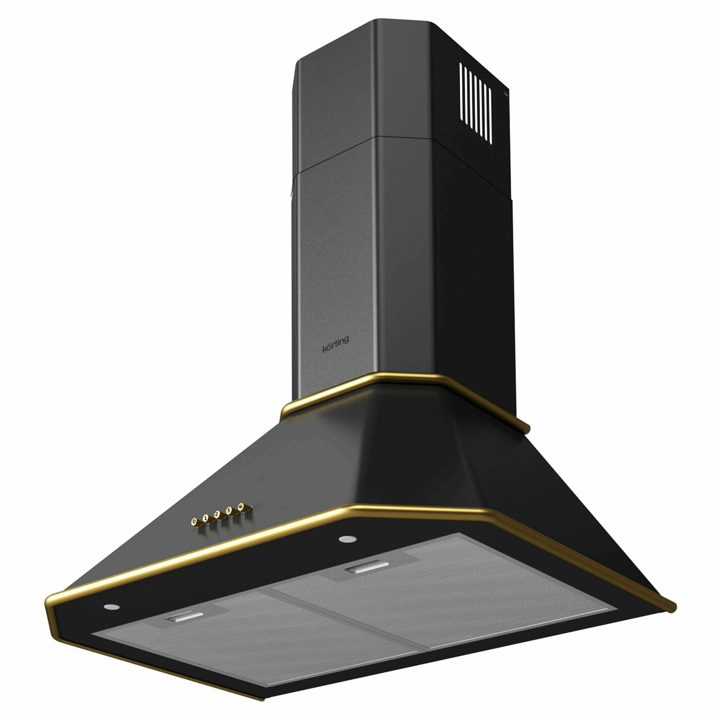 Настенная вытяжка Korting/ Кухонная вытяжка, Настенная вытяжка, Ширина 60 см, Мощность: 850 м3/ч, 3 режима, Механическое кнопочное управление, Алюминиевые жировые фильтры, 2 LED лампы освещения, цвет - матовый черный, профиль рамок и кнопки - золото 18 990 ₽ Подробнее