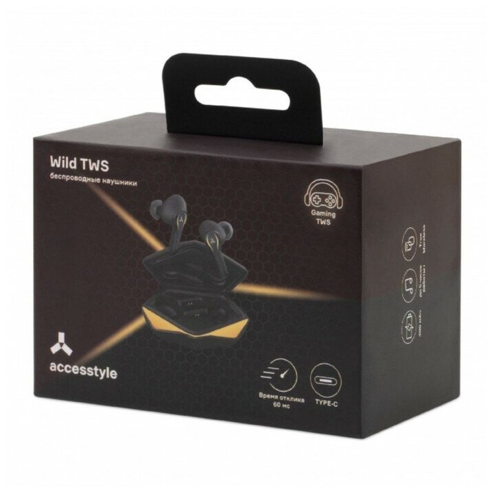 Наушники Accesstyle Wild TWS, игровые, вакуумные, 50/400мАч, отклик 60мс,подсветка,оранжевые