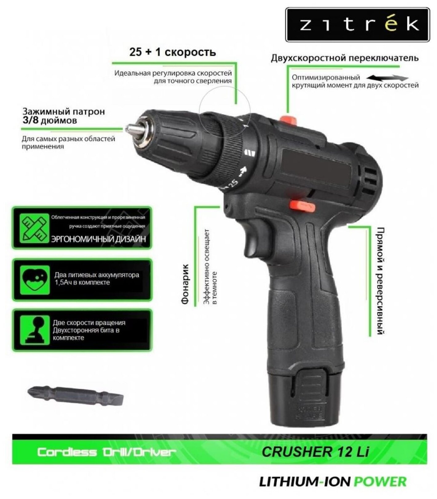 Аккумуляторная дрель-шуруповерт Zitrek Crusher 12-Li