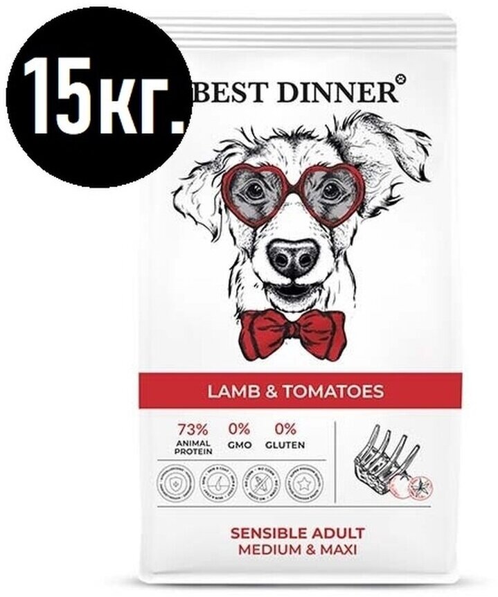 Best Dinner Adult Sensible Medium & Maxi Lamb & Tomatoes сухой корм для собак средних и крупных пород склонных к аллергии и проблемам с пищеварением с ягненком и томатами - 15 кг