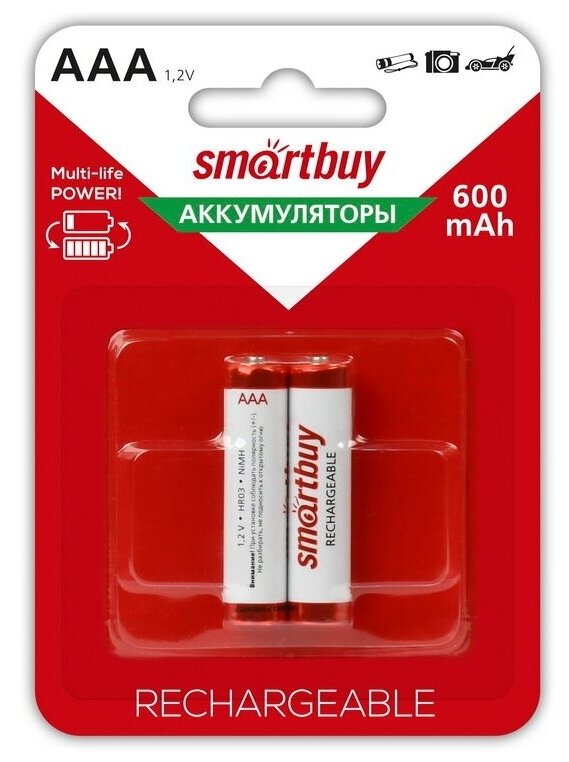 Аккумулятор NiMh Smartbuy AAA 600 mAh (SBBR-3A02BL600), 2 шт.