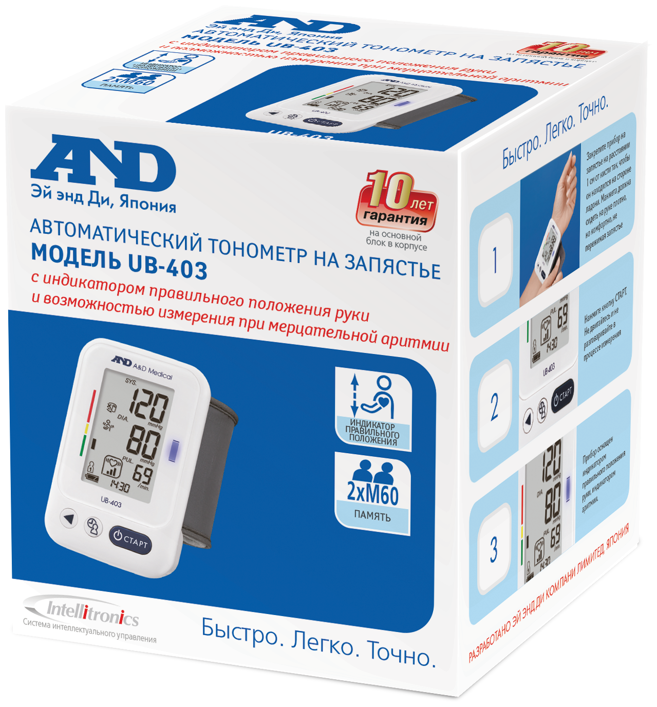 Тонометр автоматический на запястье AND UB-403 с возможностью измерения при мерцательной аритмии и индикатором правильного положения руки