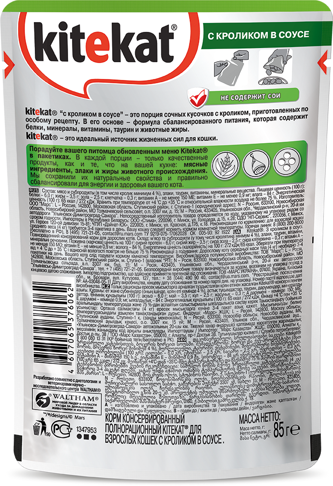 Kitekat Паучи Нежный кролик в соусе для кошек 10151308 10227783 0,085 кг 25122 (18 шт)