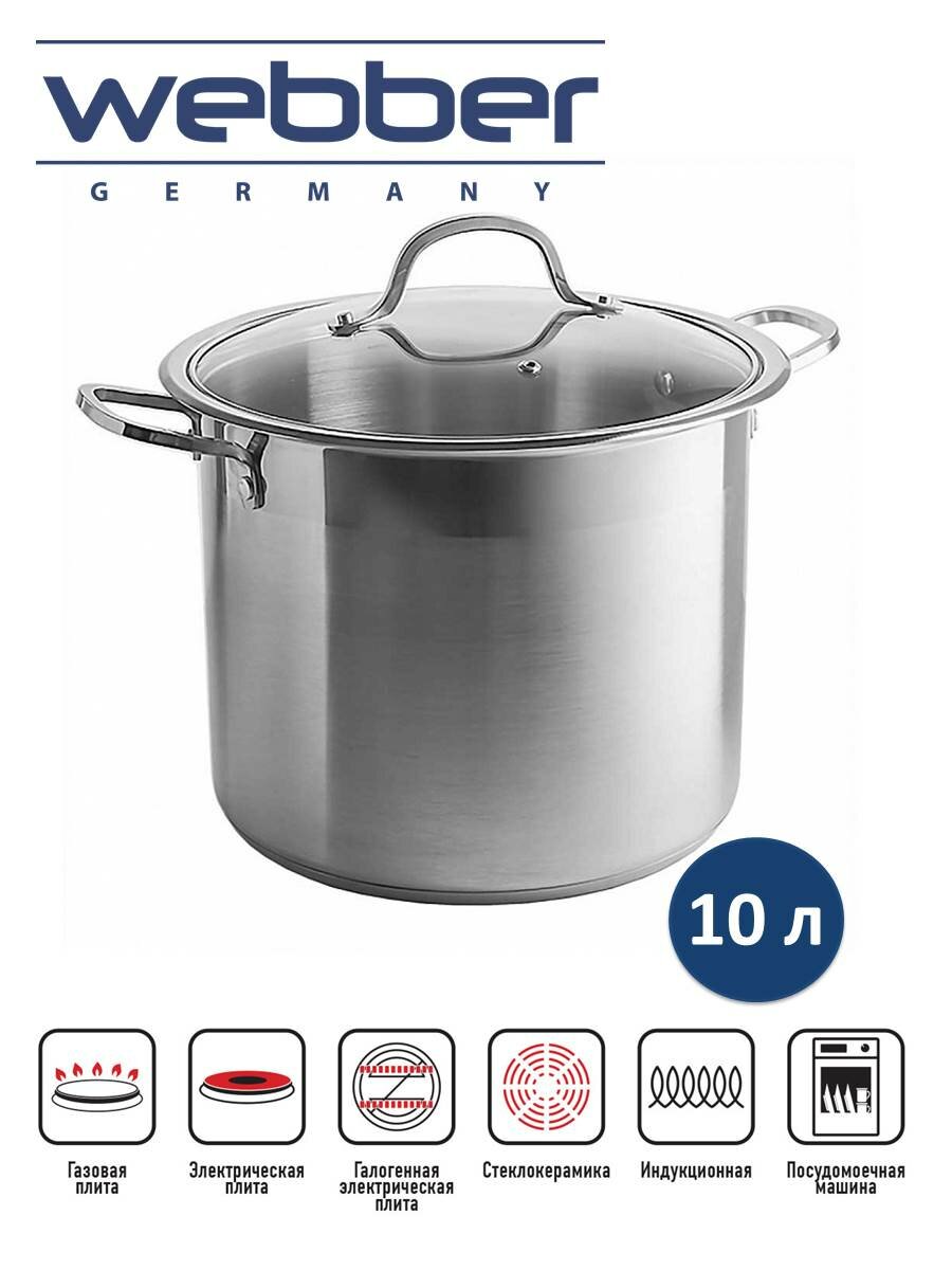 кастрюля Webber BE-128-10L нержав 10 л с стекл кр
