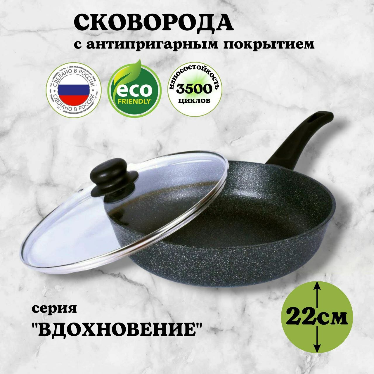 Сковородка Сковорода с антипригарным покрытием со стеклянной крышкой Tima "Вдохновение" 22 см