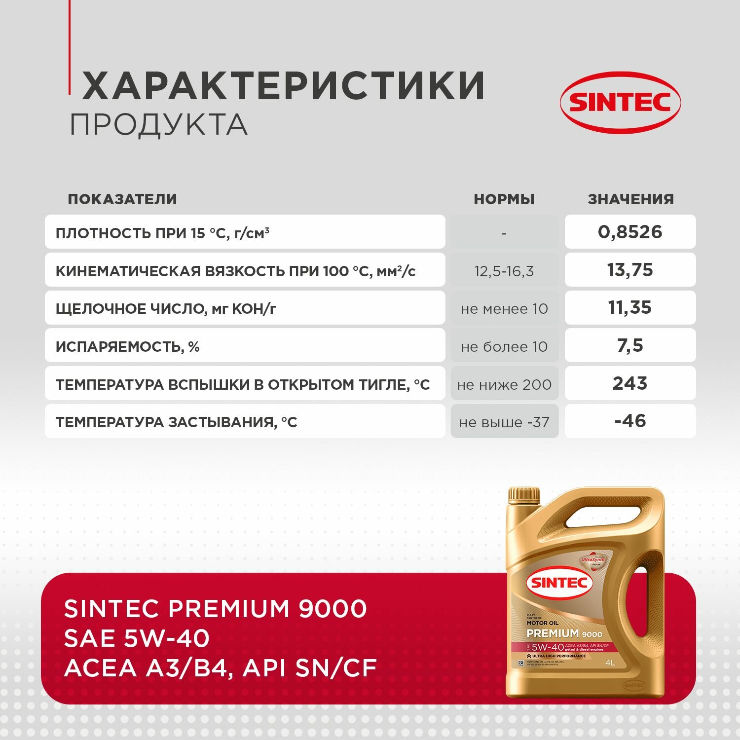 SINTEC 801971 801971 801971 SINTEC PREMIUM SAE 5W-40 API SN ACEA A3/B4 (4л)