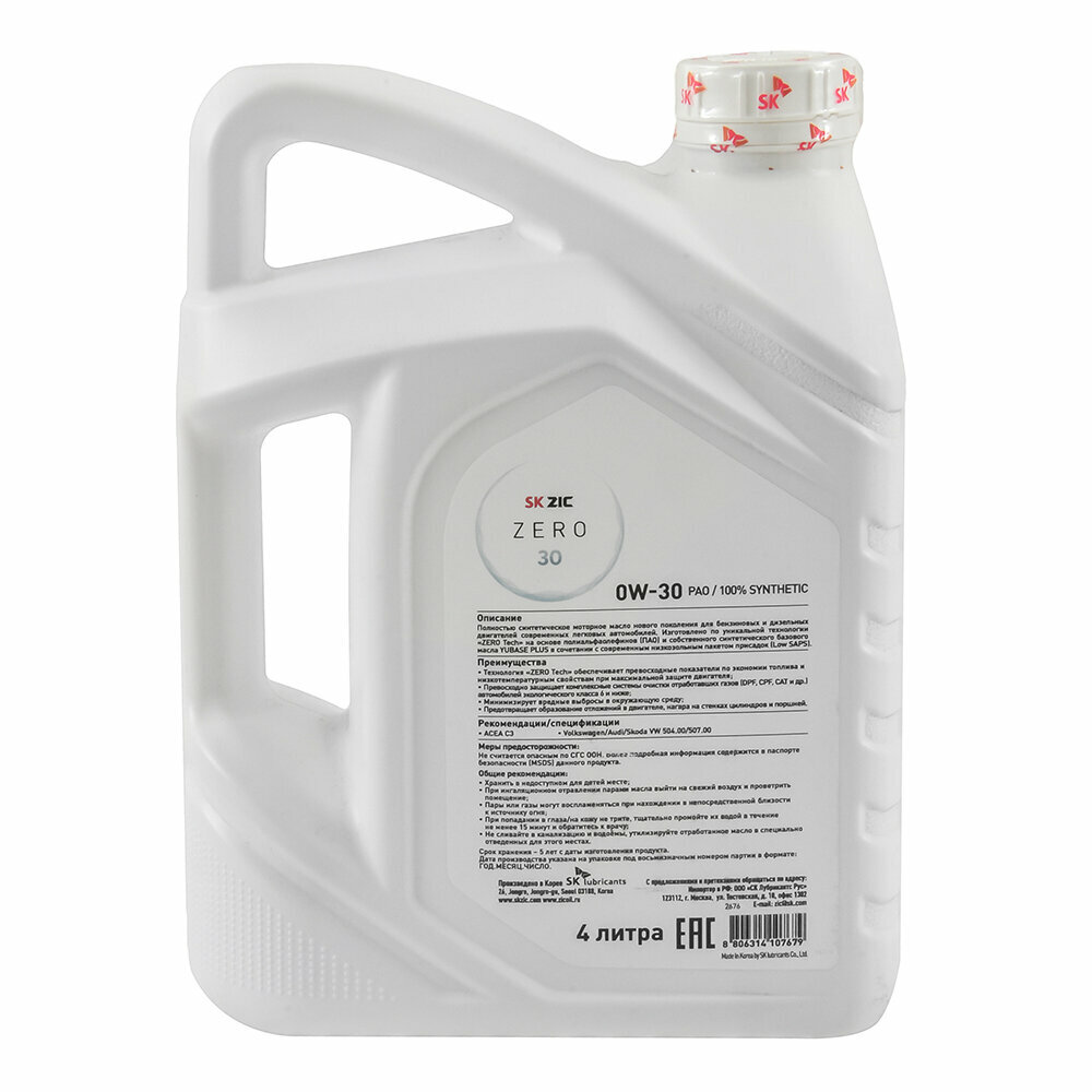 SK Lubricants (ZIC) Моторное масло ZIC ZERO 0w30 SN 4 л
