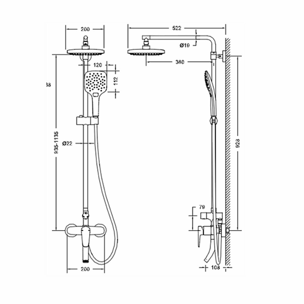 | Комплектация | ручной душ (душевая лейка) / верхний душ (тропический) / смеситель / стойка / штанга / душевой шланг / крепление ручного душа |