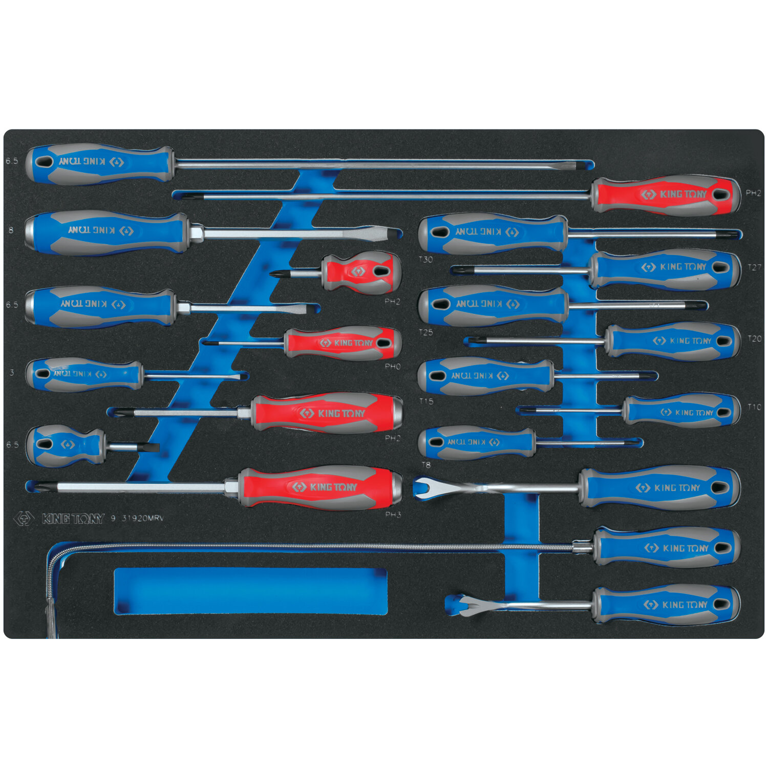Набор отверток, съемник клипс и гибкий магнит KING TONY ложемент, 20 предметов 9-31920MRV