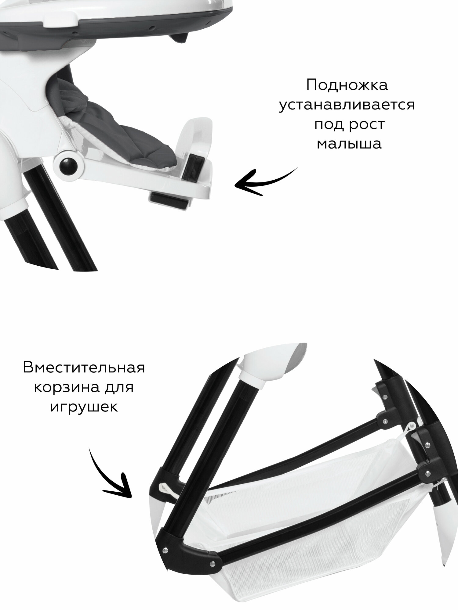 | Дополнительно | съемный столик / столешница с бортиком / ремни безопасности |