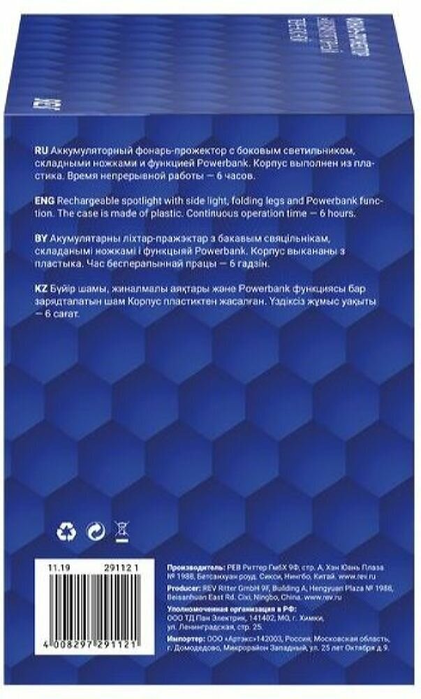 Фонарь-прожектор, литиевый аккумулятор, складные ножки, функция Powerbank, 13Вт, Ip65, 29112 1, Ritt .