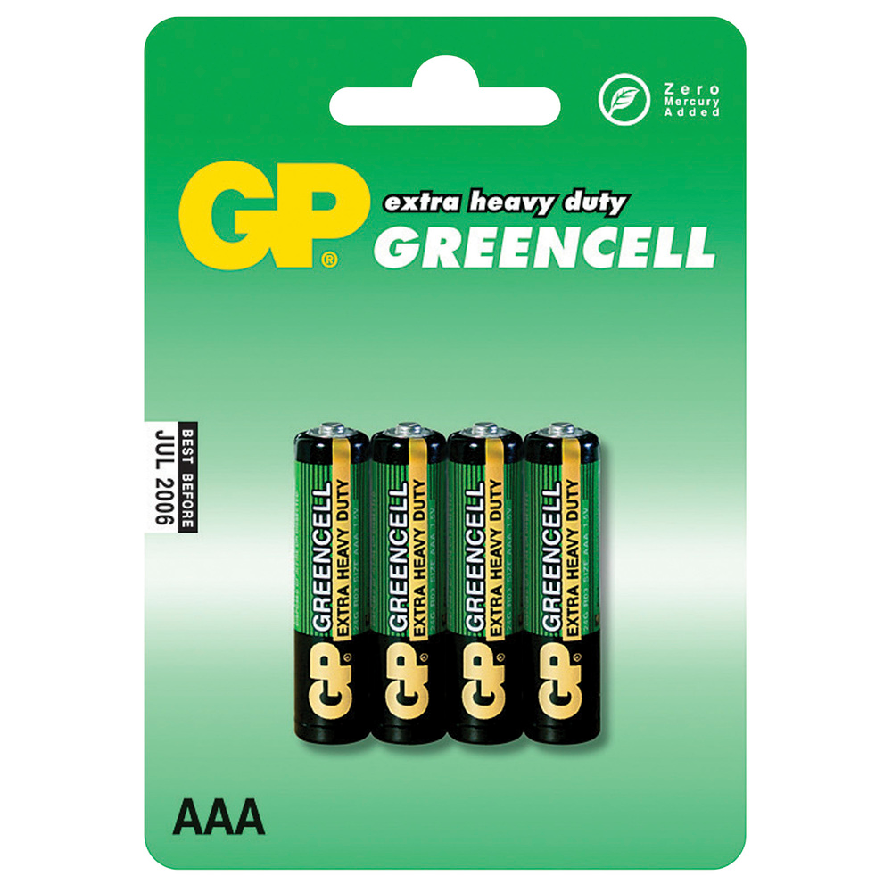 GP Батарейки "Greencell", ААА мизинчиковые, Солевые,4шт, на блистере, 1 уп