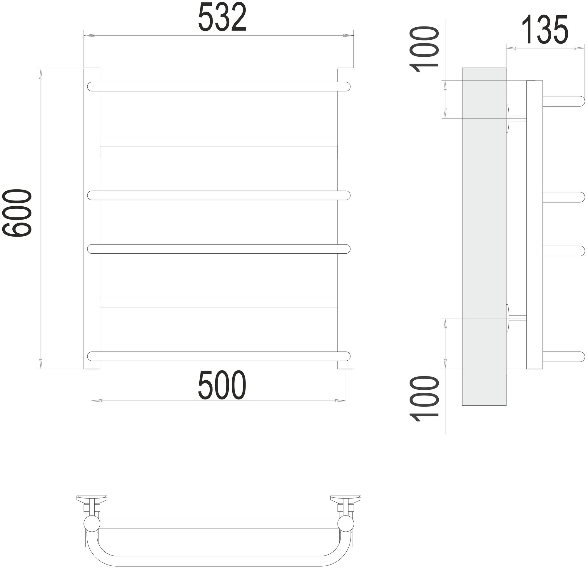 Евромикс с боковым подключением полотенцесушитель TERMINUS (577 мм / 800 мм / 500 мм)