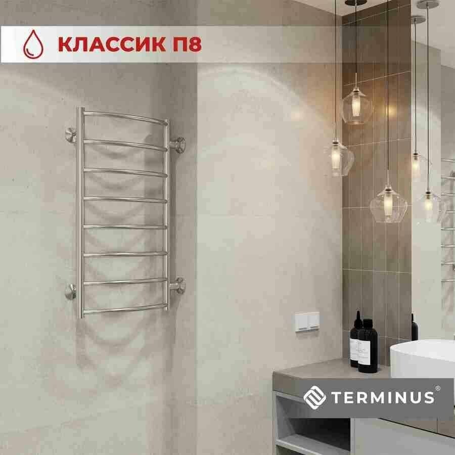 Полотенцесушитель водяной TERMINUS (Терминус) Классик П16 500х800 мм, нижнее подключение, нержавеющая сталь, гарантия 10 лет