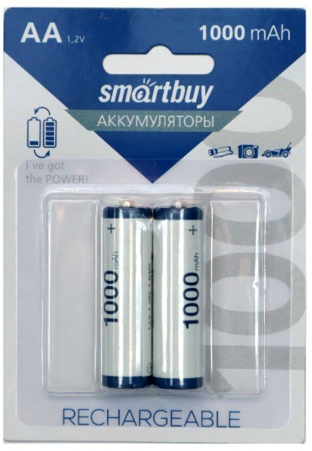 Аккумулятор Smartbuy SBBR-2A02BL1000 (1.2v, 1000mAh) NiMh, Size "aa" (уп. 2 шт)