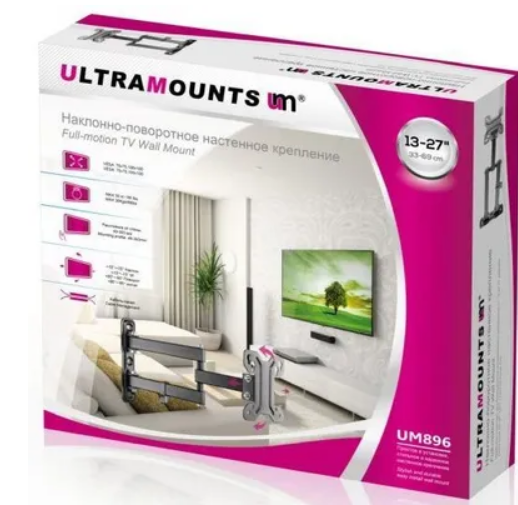 Кронштейн Ultramounts UM896 для телевизора, настенный, 13-27", до 30 кг, выдвижной, наклонный, поворотный, чёрный