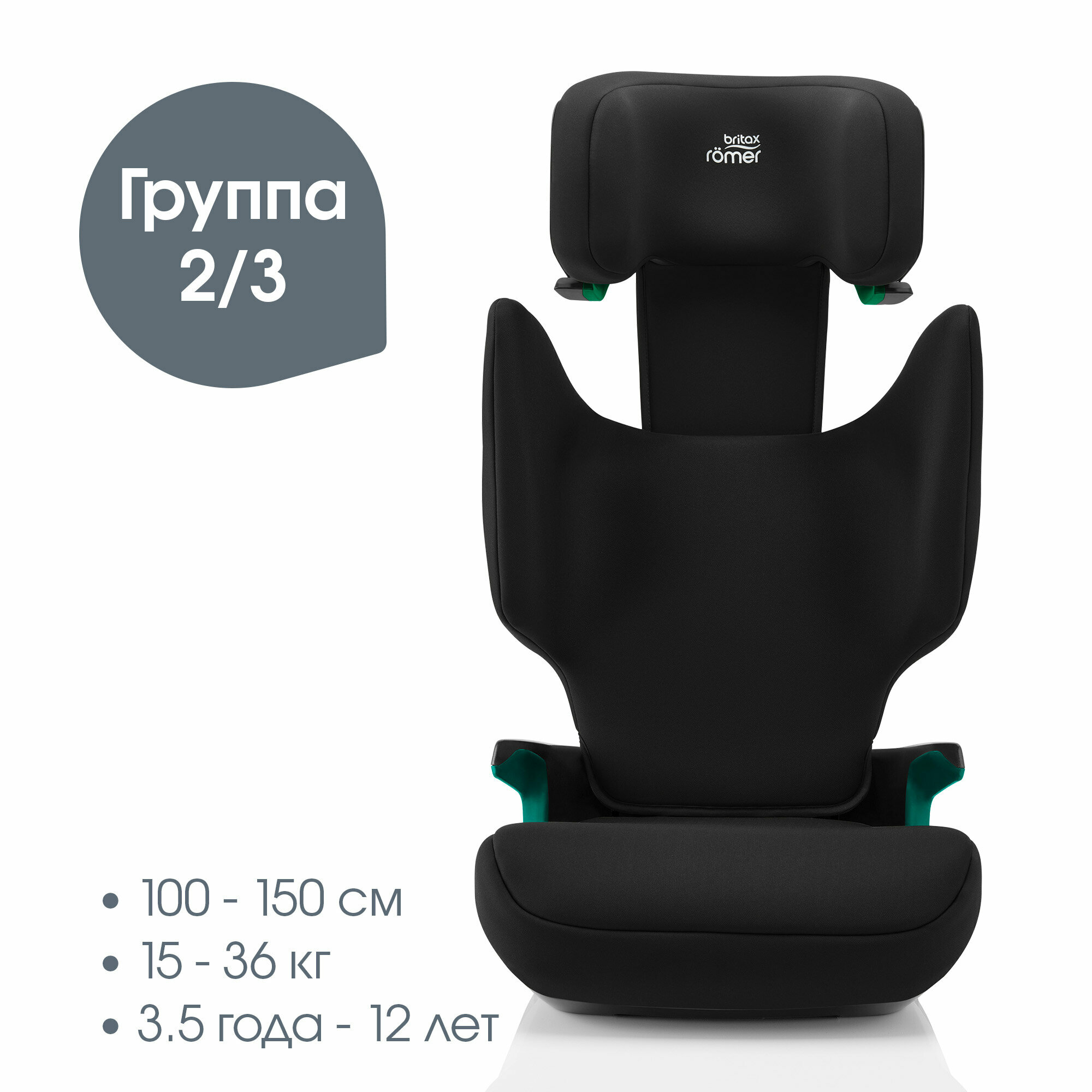 Автокресло детское Britax Roemer DISCOVERY PLUS Space Black для детей от 3,5 до 12 лет, ростом 100-150 см , весом 15 - 36 кг., с isofix, черный