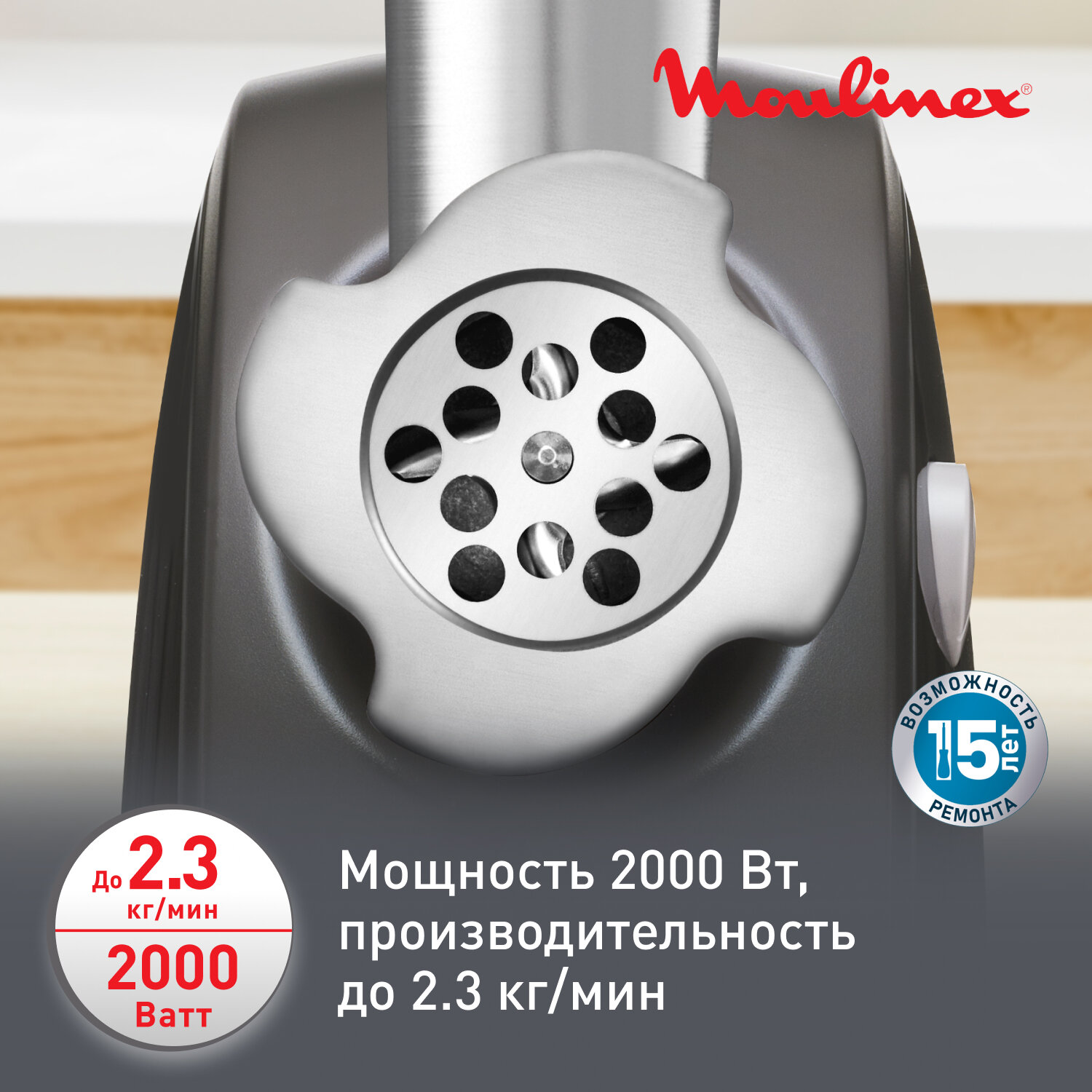 Мясорубки Электрическая мясорубка Moulinex HV4 ME472832, с 7 насадками, 2000 Вт, 2.3 кг/мин, Франция, черная
