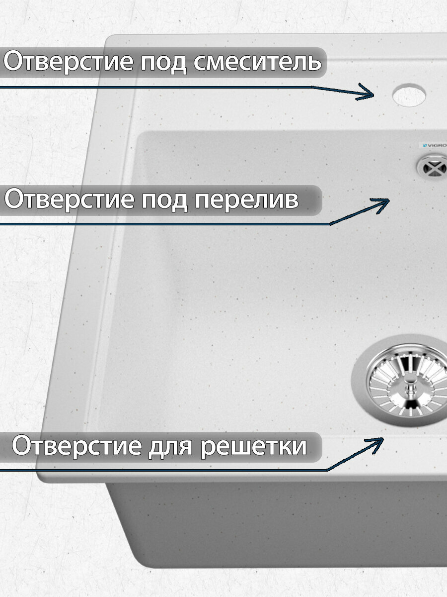 Кухонная мойка Мойка для кухни VIGRO врезная из искусственного камня (58.5*50.5 см), белый