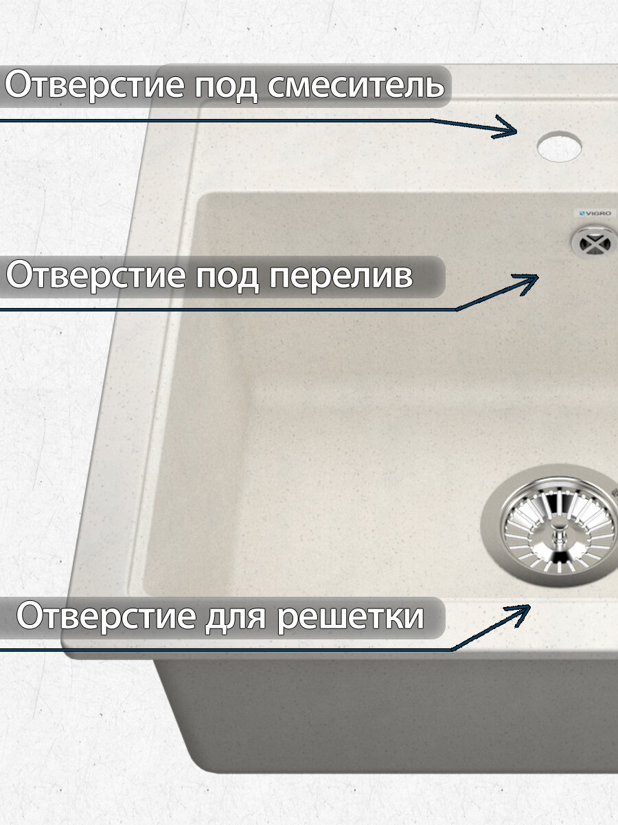 Мойка для кухни VIGRO врезная из искусственного камня (58.5*50.5 см), сахара