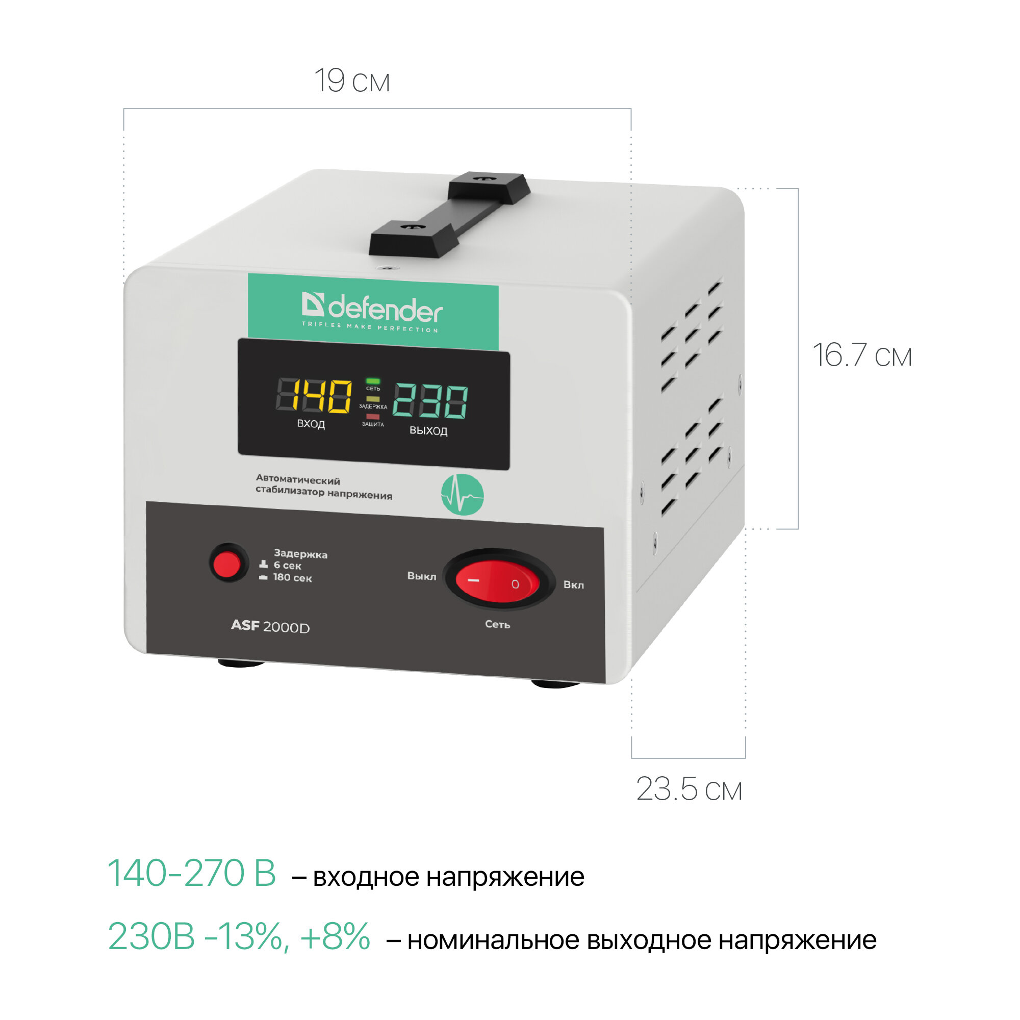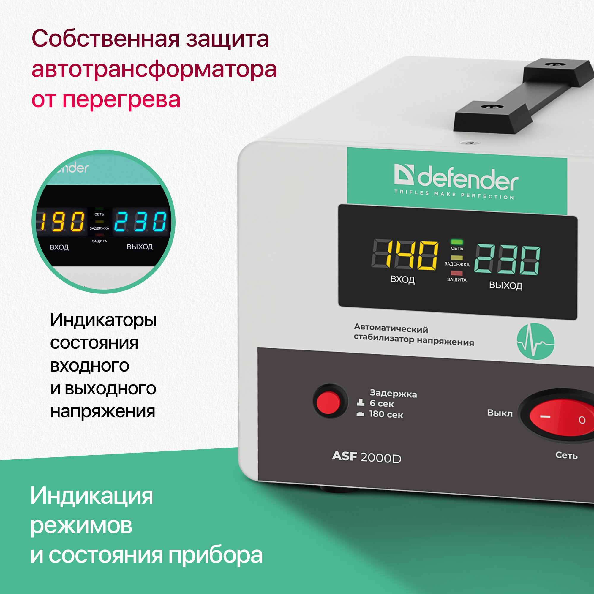 Стабилизатор напряжения Defender ASF 2000D напольный 1200 Вт, 2 розетки
