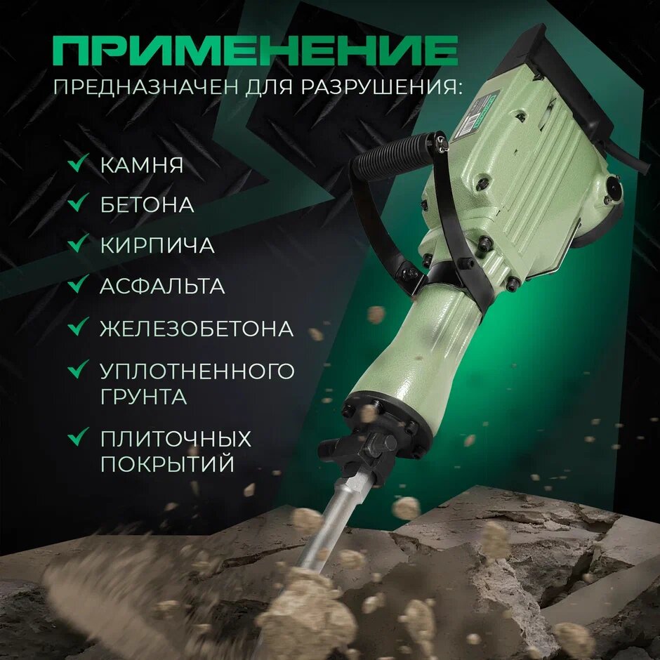 Отбойный молоток электрический / Отбойник для долбления / Отбойный молоток ELECTROLITE ОМ 65 EL ( 2200 Вт, 65 Дж, металлический корпус, пика и лопатка в комплекте, кейс ) 17 688 ₽ Подробнее